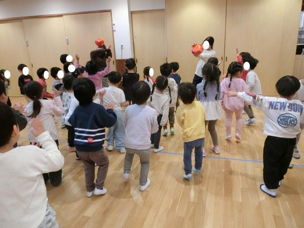 最後にみんなでキノコになって『ドコノコノキノコ』を踊りました! とても簡単な振り付けでノリノリで手を叩いて踊っていましたよ♪